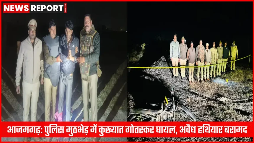 जनपद आजमगढ़ में कानून व्यवस्था को चुनौती देने वाले अपराधियों के विरुद्ध पुलिस की सख्त कार्रवाई लगातार जारी है। इसी क्रम में दिनांक 07 फरवरी 2026 की तड़के थाना अहरौला पुलिस और गोतस्करों के बीच मुठभेड़ हुई, जिसमें एक कुख्यात हिस्ट्रीशीटर गोतस्कर गोली लगने से घायल हो गया, जबकि उसका एक साथी मौके से फरार हो गया। पुलिस ने घायल अभियुक्त को गिरफ्तार कर लिया है और उसके कब्जे से अवैध तमंचा कारतूस तथा बिना नंबर प्लेट की मोटरसाइकिल बरामद की गई है।