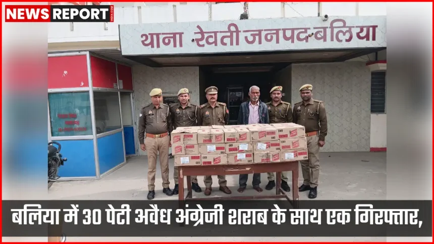 बलिया। जनपद में अवैध शराब के निष्कर्षण तस्करी और बिक्री पर प्रभावी नियंत्रण के लिए चलाए जा रहे अभियान के तहत थाना रेवती पुलिस को बड़ी सफलता हाथ लगी है। पुलिस ने आबकारी अधिनियम से संबंधित मामले में एक अभियुक्त को गिरफ्तार करते हुए उसके कब्जे से 30 पेटी आफीसर च्वाइस अंग्रेजी शराब बरामद की है। बरामद शराब की कुल मात्रा 259.200 लीटर आंकी गई है जिसकी अनुमानित कीमत 172800 रुपये बताई गई है।