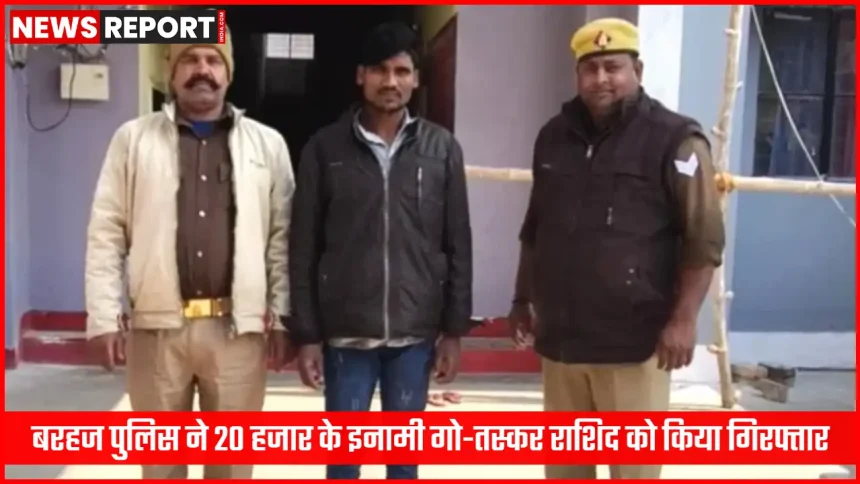 बरहज पुलिस ने 20 हजार के इनामी गो-तस्कर राशिद को किया गिरफ्तार