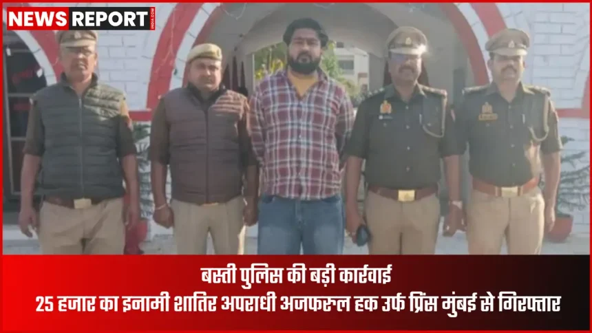 अपराध और अपराधियों के विरुद्ध चलाए जा रहे अभियान के तहत बस्ती पुलिस को एक बड़ी सफलता मिली है। लंबे समय से फरार चल रहे 25 हजार रुपये के इनामी शातिर अपराधी अजफरुल हक उर्फ प्रिंस को पुलिस ने महाराष्ट्र की राजधानी मुंबई से गिरफ्तार कर लिया है। इस गिरफ्तारी से जिले में दर्ज कई गंभीर और लंबे समय से लंबित मामलों के खुलासे की उम्मीद जताई जा रही है।