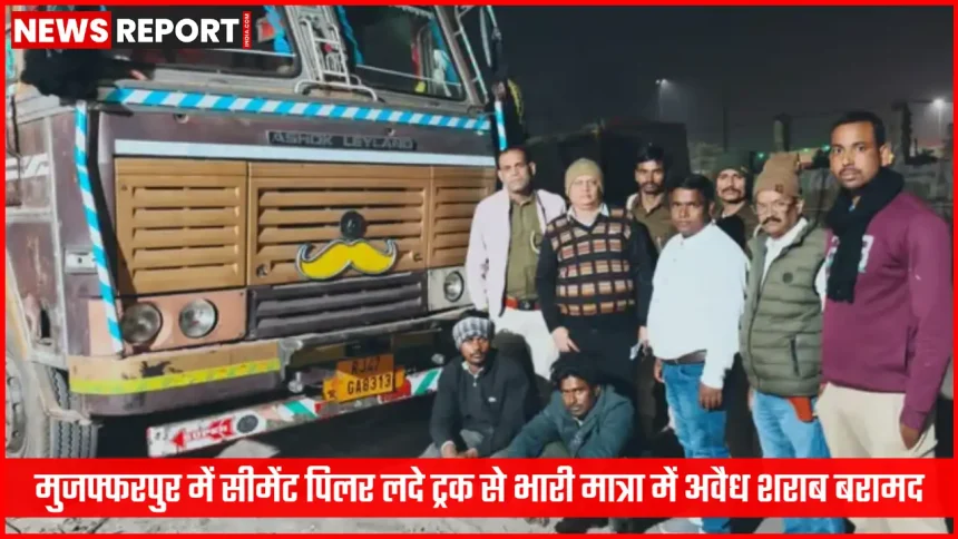 मुजफ्फरपुर जिले में अवैध शराब कारोबार के खिलाफ उत्पाद विभाग ने एक बड़ी और अहम कार्रवाई को अंजाम दिया है। जिले के गायघाट थाना क्षेत्र अंतर्गत मैठी टोल प्लाजा के पास उत्पाद विभाग की टीम ने सीमेंट के पिलर लदे एक ट्रक से भारी मात्रा में शराब बरामद की है। इस कार्रवाई में ट्रक के चालक और उप चालक को मौके से गिरफ्तार कर लिया गया है। प्रारंभिक जांच में सामने आया है कि यह शराब होली पर्व के मौके पर खपाने के लिए लाई जा रही थी।