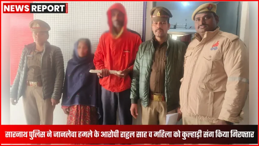 वाराणसी कमिश्नरेट पुलिस के वरुणा जोन अंतर्गत थाना सारनाथ पुलिस को प्राणघातक हमले के एक गंभीर मामले में बड़ी सफलता मिली है। पुलिस ने वांछित अभियुक्त राहुल साह और एक महिला अभियुक्ता को गिरफ्तार करते हुए घटना में प्रयुक्त कुल्हाड़ी भी बरामद की है। यह कार्रवाई पुलिस आयुक्त वाराणसी द्वारा चोरी लूट नकबजनी और गंभीर अपराधों के सफल अनावरण तथा फरार अभियुक्तों की गिरफ्तारी के लिए चलाए जा रहे अभियान के तहत की गई।