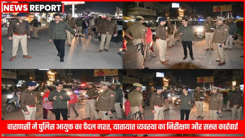 शहर में यातायात व्यवस्था को सुगम और सुरक्षित बनाने के उद्देश्य से दिनांक 7 फरवरी 2026 को पुलिस आयुक्त कमिश्नरेट वाराणसी मोहित अग्रवाल ने व्यापक भ्रमण और पैदल गश्त की। इस दौरान उन्होंने प्रमुख चौराहों और व्यस्त इलाकों में पहुंचकर मौके पर ही यातायात, सुरक्षा और जनसुविधाओं से जुड़ी व्यवस्थाओं का निरीक्षण किया। पैदल गश्त के दौरान नियमों का उल्लंघन करने वाले वाहन चालकों के खिलाफ सख्त अभियान भी चलाया गया।