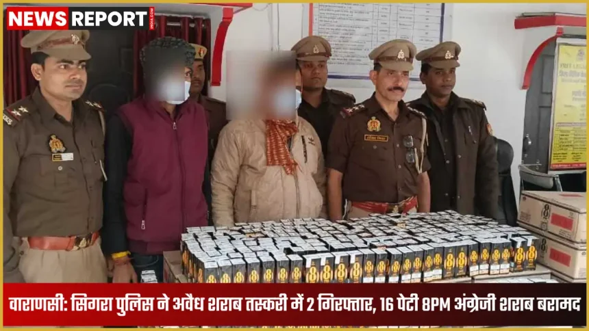 वाराणसी में अवैध शराब तस्करी के खिलाफ चलाए जा रहे अभियान के तहत थाना सिगरा पुलिस ने बड़ी कार्रवाई करते हुए दो आरोपितों को गिरफ्तार किया है। यह कार्रवाई पुलिस आयुक्त वाराणसी के निर्देश पर अपराध और अपराधियों के विरुद्ध चलाए जा रहे विशेष अभियान के अंतर्गत की गई। पुलिस उपायुक्त काशी जोन के निर्देशन और अपर पुलिस उपायुक्त जोन काशी के पर्यवेक्षण में सहायक पुलिस आयुक्त चेतगंज तथा प्रभारी निरीक्षक थाना सिगरा के नेतृत्व में यह कार्रवाई की गई।